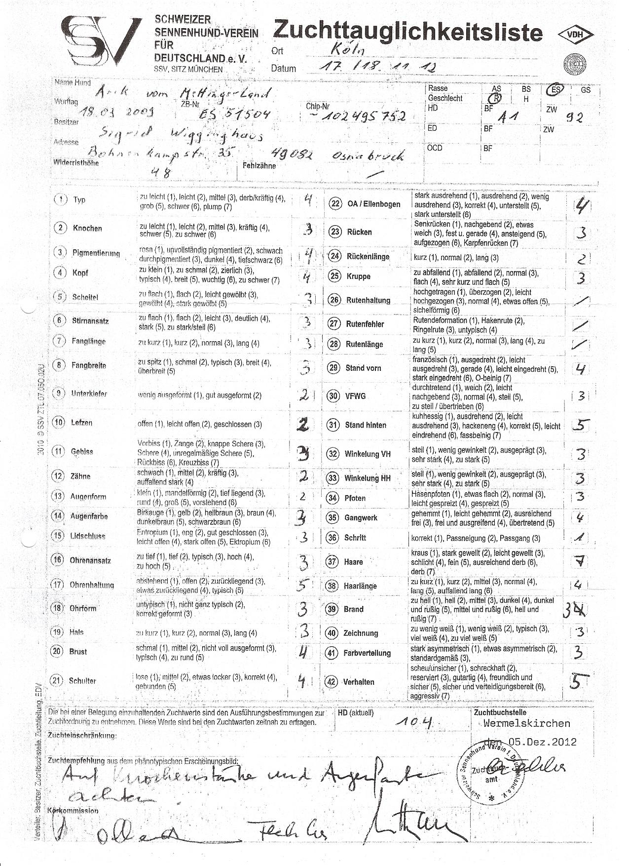 Zuchttauglichkeitsliste unten!