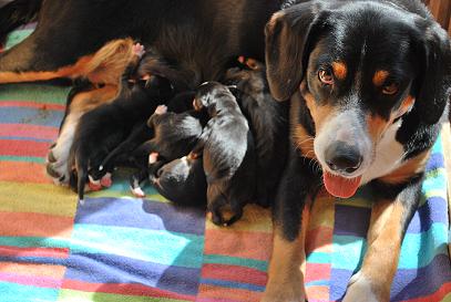 Muntere Welpen und eine müde Bonny