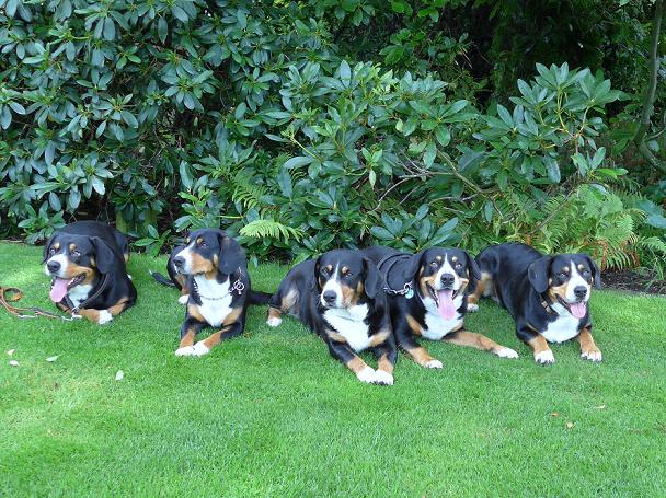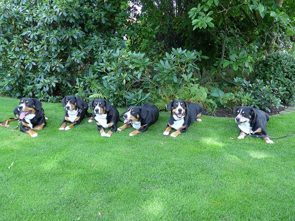 Nachzuchtgruppe von Bella (Mitte) mit Aiko, Akira, Arik, Bo-Benji und Bonny