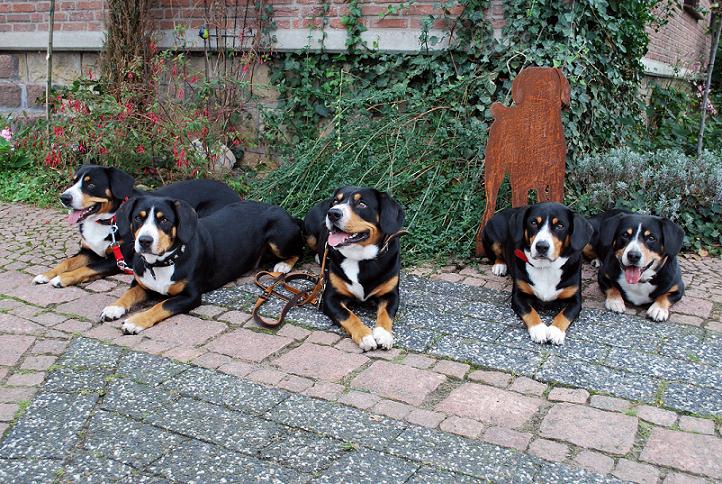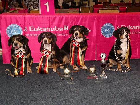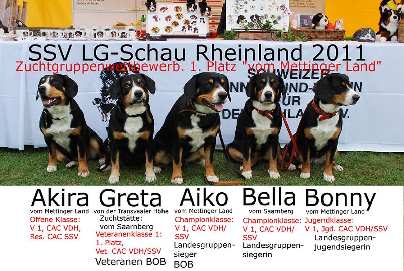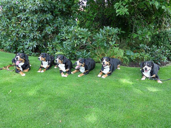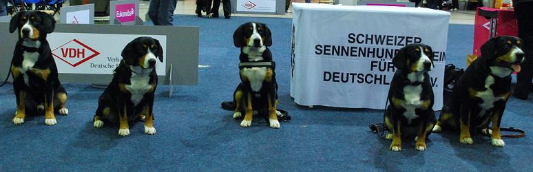 “Die Mettinger” auf der Europasiegerausstellung 2013 in Dortmund: Cooper, Bonny, Dino, Bo-Benji und Aiko