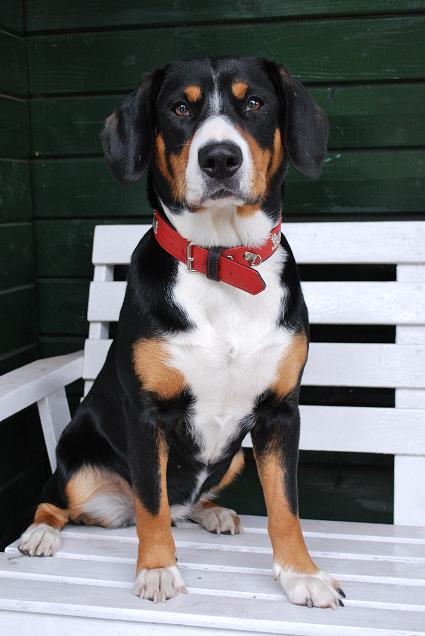 ist ein Eigengewächs “vom Mettinger Land”. Sie ist ausgesprochen temperamentvoll, sehr neugierig und hat zur Zeit von unseren Dreien den mit Abstand größten Futterverbrauch, weil sie den ganzen lieben Tag “auf Achse” ist. Sie hat ein gesundes Selbstbewusstsein und einen ausgeprägten Spieltrieb. Sie sieht “Mama Bella” zum verwechseln ähnlich; fast wie geklont. ... alles in allem eine typische, stolze junge Entlebucher Hündin, die uns ganz, ganz viel Spass macht.