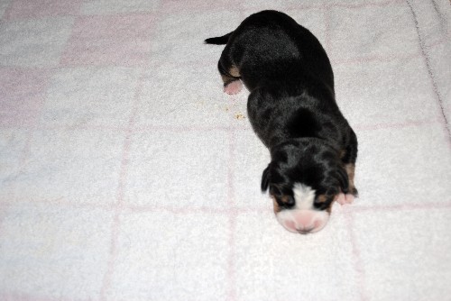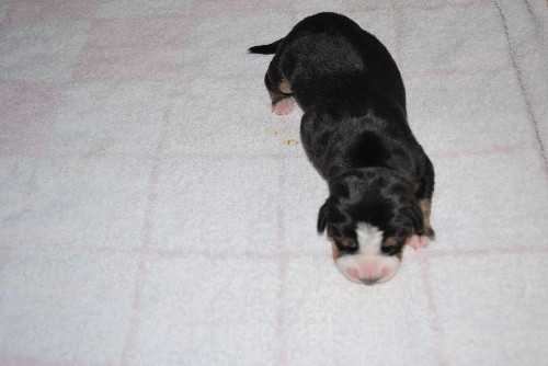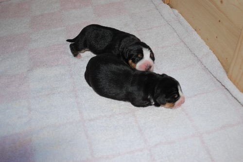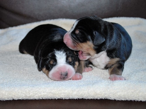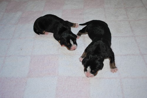 Die ersten beiden Welpen sind Hündinnen, 520 und 510 g schwer
