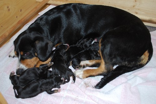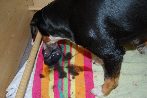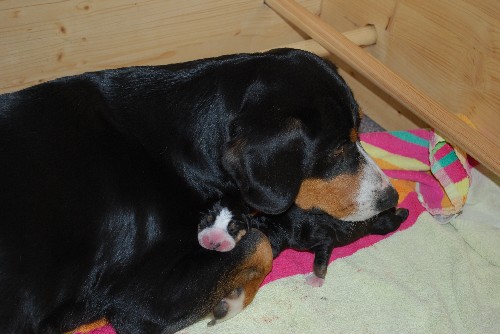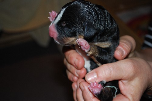 3 Uhr: Der erste Welpe ist da, eine kleine Hündin 520 g schwer