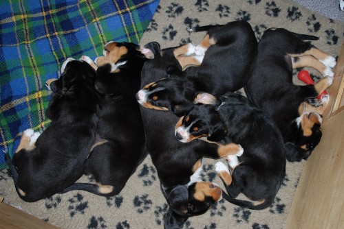 Heute, mit leichter Verspätung, einige neue Welpenfotos (der Fotograf war “platt”, aber die kleine Bande ist topfit)